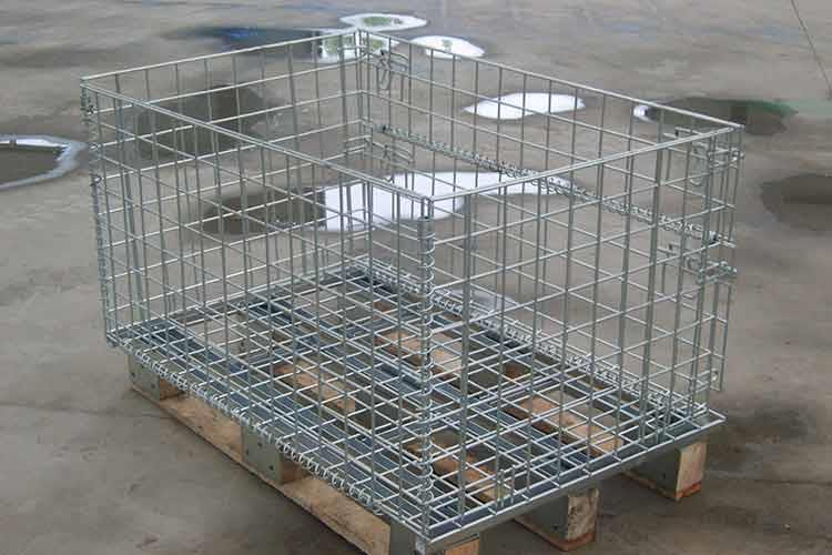 木托仓储笼的主要材料为低碳铁丝、槽钢、热轧钢板等。该仓储笼的外形非常的轻巧,笼体除底框外皆有铁丝碰焊成的网片组合而成,网片与网片、网片与底框靠小连接件连接,可活动。在木托仓储笼空笼时可折叠存放,充分利用空间。同时仓储笼前面可打开,在堆垛后能取物,堆垛时承重在侧面的网片上。