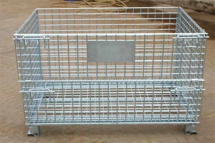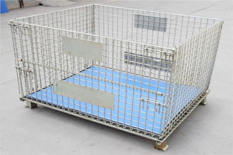 蝴蝶笼仓储笼采用钢材经冷轧硬化焊接而成,强度高,装载能力大,规格统一,容量固定,存放货物一目了然,易于库存清点,表面镀锌,美观,使用寿命长,采用国际标准,可与集装箱配套使用,提高空间利用率,可互相堆叠四层高,实现立体化存储,表面环保处理,卫生周转、存放回收均不污染环境,配合叉车、地牛、升降机、吊车等设备可进行作业,折叠式结构,回收成本低,是木质包装箱的替代产品,底部可安装轮子,工厂内部周转很方便。